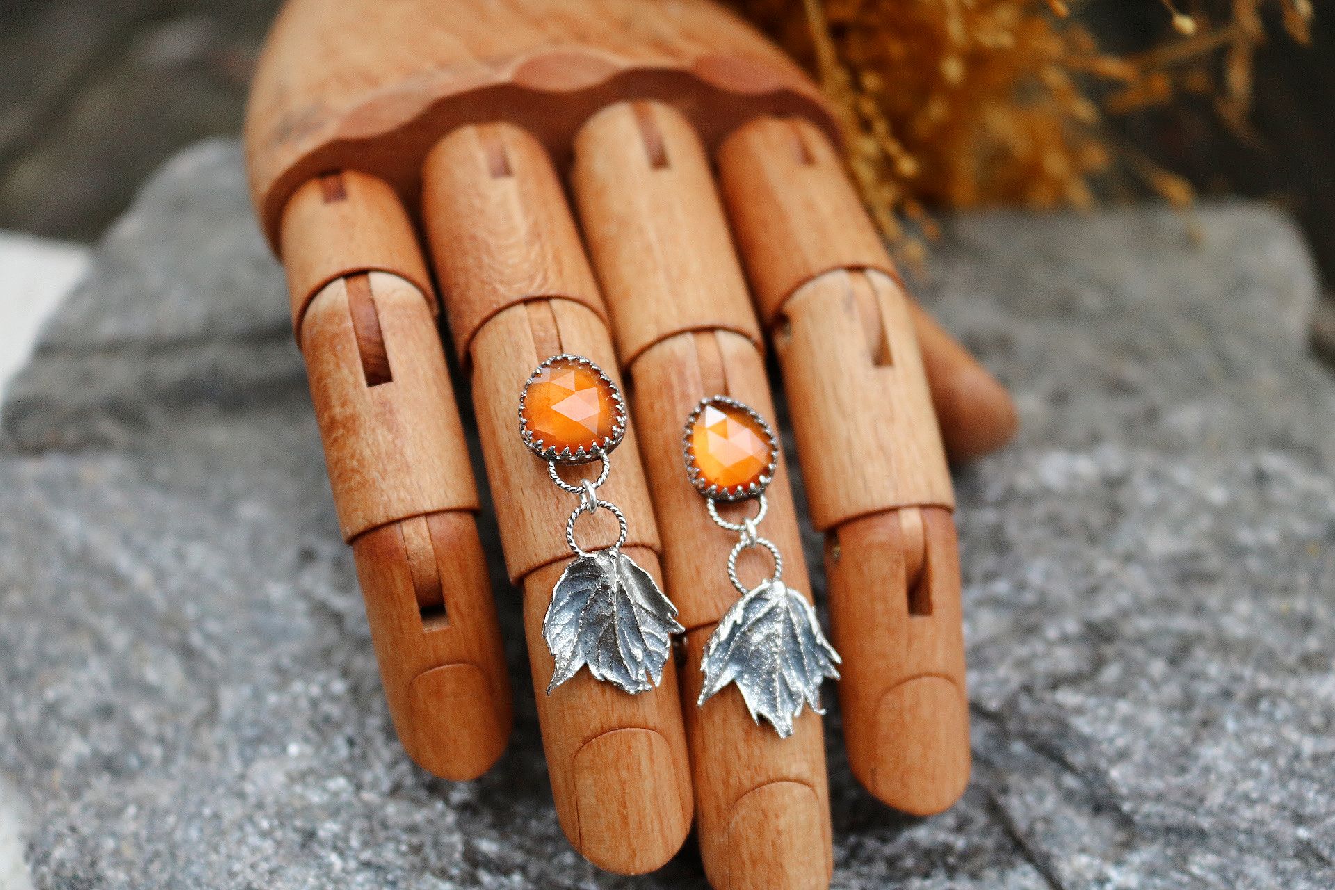 .925 Sterling Silver Hessonite Garnet Forged by hand.